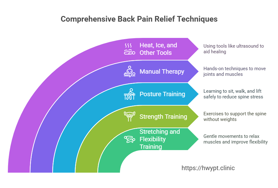 Physical therapy for back pain uses many helpful techniques. These are safe, easy ways to help your back feel better and move more freely. In Oregon cities like Salem, Portland, and Hillsboro, therapists use a mix of methods to match each person’s needs.