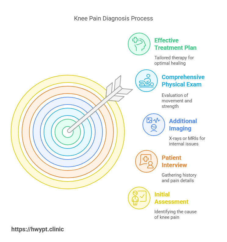Before starting treatment, a physical therapist needs to know what’s causing your knee pain. They do this by checking how your body moves and feels. This step is called a diagnosis. It helps the therapist make the best plan for your healing.