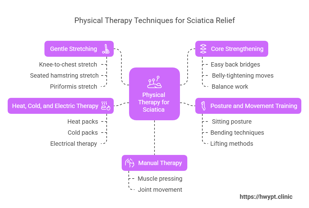 A physical therapist will check how your body moves. Then they make a plan just for you. They help you stretch, strengthen, and sit or stand the right way. This helps take pressure off the sciatic nerve.