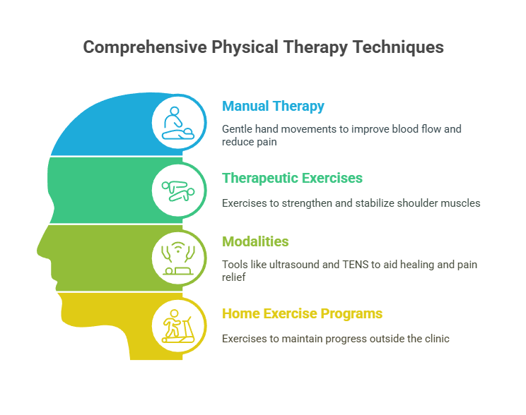 Your therapist will check how your shoulder moves and feels. Then, they will make a plan just for you. This plan may include easy stretches, light lifting, massage, and heat or ice packs. You will learn how to do these things both at the clinic and at home.